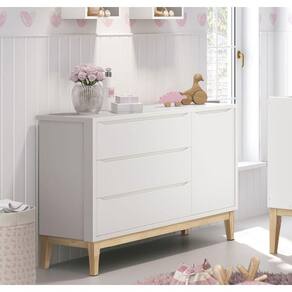 Evidênciando um ar retrô com o modelo de seus pés em madeira maciça, a Cômoda Sapateira Classic New - RELLER possui um desing clean que combina com vários estilos de decoração. É perfeita para a organização das roupinhas e acessórios do seu baby, proporciona um espaço para armazenamento e com divisória interna, para que a organização do dia-a-dia possa ser mais fácil. Possui puxadores embutidos, as aberturas ocorrem através de recortes no MDF que possibilitam o perfeito encaixe da mão para que possa abrir as portas e gavetas.
