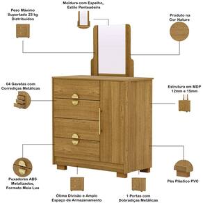 Estrutura em MDP 12mm e 15mm, com acabamento em pintura UV na tonalidade Nature.