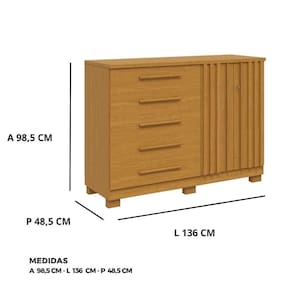 Material: MDFAcabamento: Pintura UV (Ultravioleta)Portas: Sim, possui 2 portasGavetas: Sim, possui 5 gavetasPrateleiras: Sim, possui 2 prateleiras internasCorrediças: TelescópicasPuxadores: Em MDF revestidoCabideiro: Em alumínioSistema de montagem: Convencional (Parafusos, minifix e cavilhas)Prateleiras suportam até: 5 KgGavetas suportam até: 5 KgO produto suporta até: 100 kg (distribuídos de forma adequada no mesmo) Material: MDF | Acabamento: Pintura UV (Ultravioleta) | Portas: Possui 2 portas | Gavetas: Possui 4 gavetas | Prateleiras: Possui 10 prateleiras internas | Corrediças: Telescópicas | Puxadores: MDF revestido | Cabideiro: Em alumínio | Sistema de montagem: Convencional (Parafusos, minifix e cavilhas) | Prateleiras suportam até: 5 Kg | Gavetas suportam até: 5 Kg | O produto suporta até:: 100 kg (distribuídos de forma adequada no mesmo) | Altura: 98,5 cm | Largura: 136 cm | Profundidade: 48,5 cm | Peso: 61 Kg | Requer Montagem: Sim | Tipo de Móvel: Cômoda | Quantidade de Caixas de embalagem: 2 Cor: Cinamomo