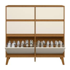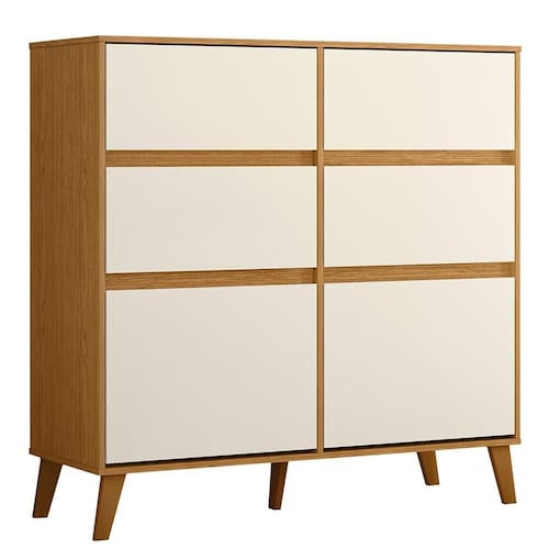 A Cômoda Sapateira Dora 2 Portas e 4 Gavetas une praticidade e charme para manter tudo sempre organizado. Produzida em MDP com pintura UV, conta com duas portas basculantes com sapateira dupla, quatro gavetas com corrediças telescópicas e puxadores estilo pega que facilitam o uso. Seus pés com design retrô acrescentam um toque especial, enquanto o amplo espaço interno garante mais funcionalidade para o seu dia a dia.