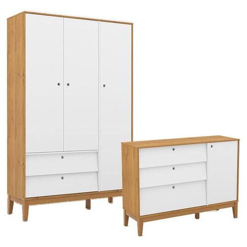Cômoda Sapateira e Guarda Roupa Unique 3 Portas Freijó Branco Eco Wood - Matic