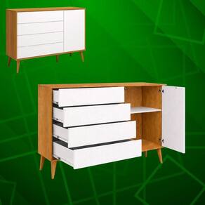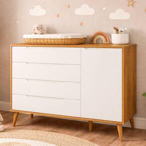 O modelo conta com gavetas amplas, ideais para roupas, acessórios e itens pessoais, além de um compartimento lateral com porta, perfeito para acomodar calçados ou objetos maiores de forma discreta e organizada.