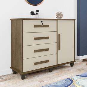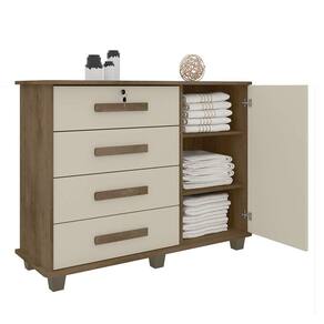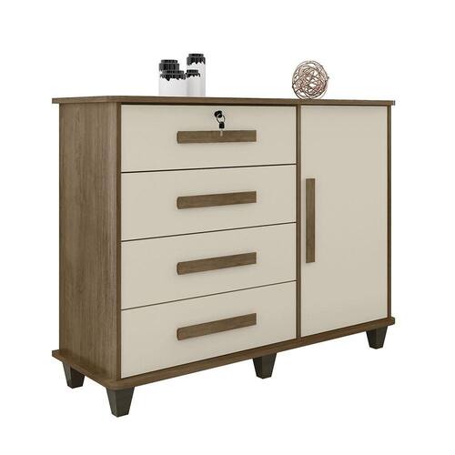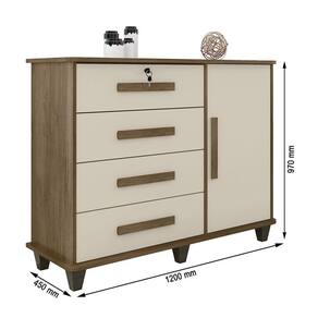 A Cômoda Grécia é uma excelente opção para você guardar suas roupas e objetos com organização, excelente qualidade e ainda dar um toque especial com design exclusivo que agrega mais beleza à peça. São 4 gavetas no total - e uma delas tem chave para você colocar o que for importante com segurança e ainda uma porta com prateleiras para os seus sapatos.