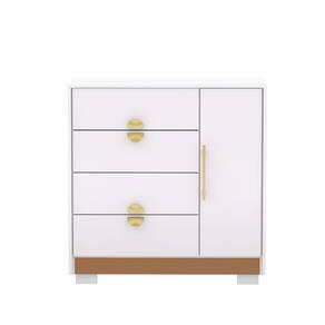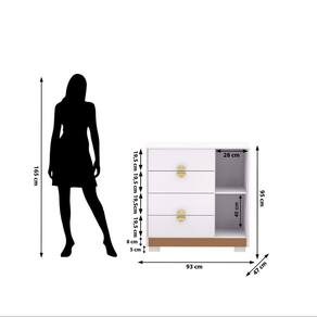 Com 4 gavetas de corrediças metálicas e uma porta lateral com prateleira móvel, oferece