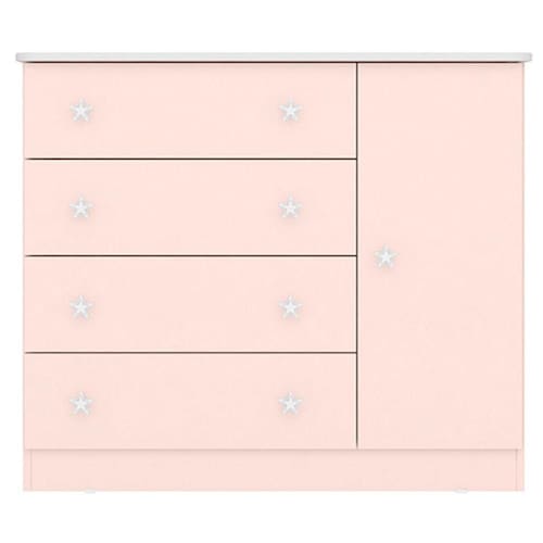 Cômoda Sapateira Infantil 1 Porta 4 Gavetas Doce Mel Rosa