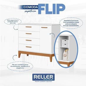Cômoda Sapateira Infantil Flip Branco Acetinado - Reller