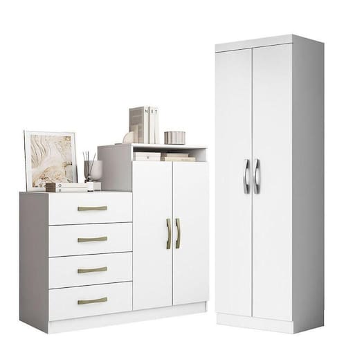 Cômoda Sapateira Londres 2004142 e Armário Multiuso New 2000192 Branco - Aramóveis