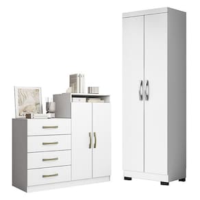 Cômoda Sapateira Londres 2004142 e Armário Multiuso New 2000192 Branco Tx com Pés Preto - Aramóveis