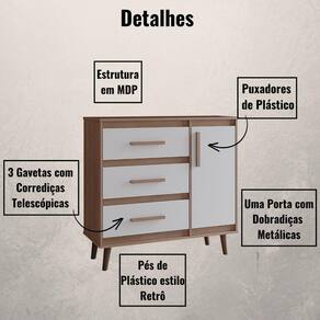 A Cômoda Mila combina elegância com funcionalidade. Seu design sofisticado e acabamento impecável oferecem durabilidade e estilo atemporal para qualquer ambiente. Com uma porta e 3 gavetas espaçosas, é a escolha ideal para quem busca organização sem abrir mão do charme na decoração do lar.
