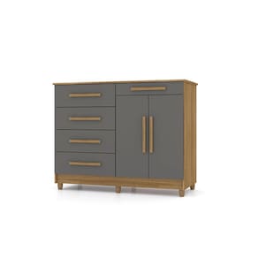 Produzido em MDP, Possui 2 Portas, Pés de madeira opcional na montagem, Puxadores em MDF e ainda conta com 5 Gavetas.