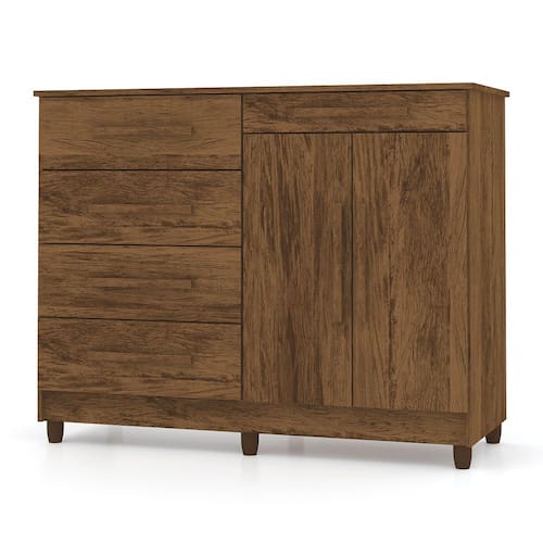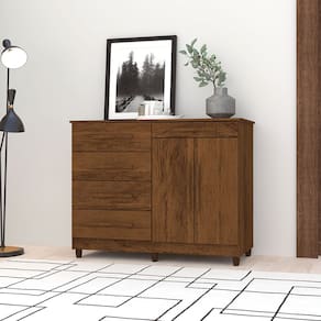 A cômoda Livia conta com 05 gavetas espaçosas e 02 portas, oferecendo amplo espaço para armazenar roupas, acessórios e calçados de forma organizada e acessível. As gavetas são perfeitas para guardar roupas dobradas, enquanto o espaço com portas é ideal para itens maiores, como sapatos e bolsas. Além disso, a distribuição dos compartimentos facilita a visualização e o acesso aos itens armazenados.