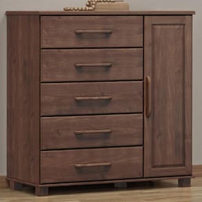 Com 5 gavetas espaçosas e 1 porta com prateleiras internas, essa cômoda para quarto transforma o armazenamento em uma experiência premium. Cada detalhe foi pensado para quem exige perfeição, desde as gavetas com profundidade ideal para as mais diversas roupas até a porta com prateleiras, onde cada sapato tem seu lugar ao sol. Para finalizar, a estrutura 100% em madeira maciça une resistência e beleza em proporções exatas.