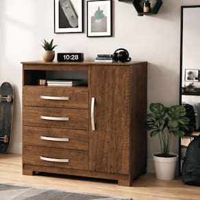 Sua estrutura é produzida em MDP de 12 mm, proporcionando resistência e durabilidade para o uso diário. Conta com 4 gavetas espaçosas e 1 porta lateral, oferecendo uma organização prática e eficiente. Os puxadores em ABS garantem um acabamento moderno e funcional, enquanto os pés plásticos ajudam na estabilidade do móvel e facilitam a limpeza do ambiente.