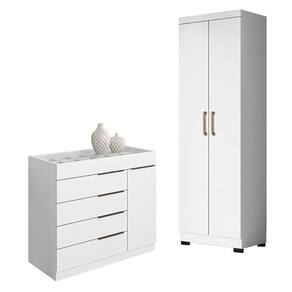 Cômoda Sapateira Sevilha 2004147 e Armário Multiuso 2000191 Branco Tx com Pés Preto - Aramóveis
