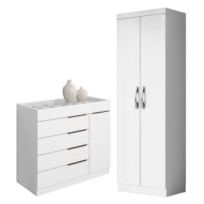Cômoda Sapateira Sevilha 2004147 e Armário Multiuso New 2000192 Branco - Aramóveis