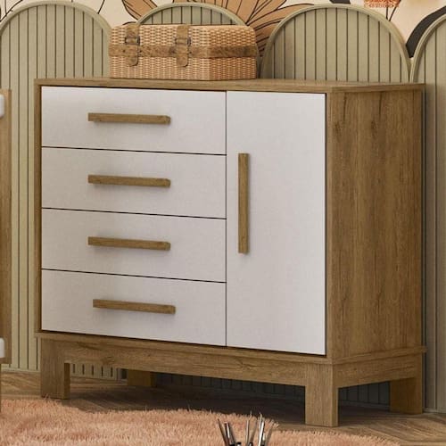Para maior conforto e comodidade, temos sempre a melhor opção do mercado! Apresentamos a Cômoda Sapateira da linha Slim, desenvolvida pela Qmovi. Fabricada com materiais de alta qualidade, possui quatro gavetas espaçosas, perfeitas para organização de roupas e acessórios. Puxadores em MDF e com alto padrão de acabamento, garantindo maior durabilidade e elegância ao quarto da criança. Confira!