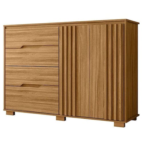 Começou a procurar móveis para seu quarto? Então apresentamos para você esta bela cômoda da linha Texas. Composta por duas portas com detalhes ripados adicionam um toque de requinte. Contando com quatro gavetas espaçosas equipadas com corrediças telescópicas, garante um deslizamento mais suave e . Para completar, os pés em PVC garantem mais estabilidade e facilita na limpeza. Fabricado pela Moval, é desenvolvido em 100% MDP, sendo a escolha perfeita para quem deseja sofisticação e praticidade na organização quarto, aproveite!