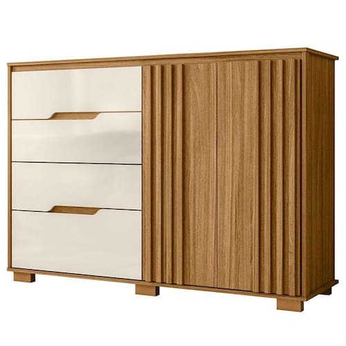 Começou a procurar móveis para seu quarto? Então apresentamos para você esta bela cômoda da linha Texas. Composta por duas portas com detalhes ripados adicionam um toque de requinte. Contando com quatro gavetas espaçosas equipadas com corrediças telescópicas, garante um deslizamento mais suave e seguro. Para completar, os pés em PVC garantem mais estabilidade e facilita na limpeza. Fabricado pela Moval, é desenvolvido em 100% MDP, sendo a escolha perfeita para quem deseja sofisticação e praticidade na organização quarto, aproveite!