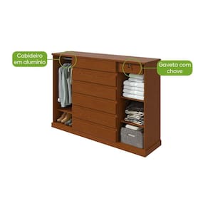 Produto em MDP; Fecho toque nas portas; Tampo de 25mm; 07 gavetas; Gavetas com corrediças telescópicas; 01 gaveta interna com chave; 02 portas com 05 nichos internos; Cabideiro em alumínio; Fundo das gavetas e costas em HDF. Vantagens/Benefícios: Produzido com equipamentos de alta tecnologia; Produto avaliado e aprovado por um rigoroso controle de qualidade; Fácil montagem e manual de montagem simplificado; Design minimalista; Gavetas ideais para acomodação das roupas em maiores quantidades; Acabamento com toque aveludado; Tampo de 25mm para maior resistência; Prateleiras internas para sapatos; Portas que se abrem facilmente; Gavetas grandes e espaçosas com corrediças telescópicas.