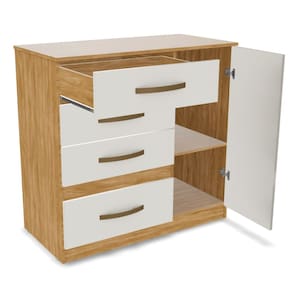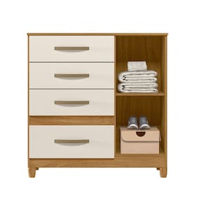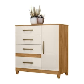 A Cômoda Sapateira Vênus conta com 1 porta de giro e 4 gavetas, proporcionando um espaço amplo para guardar roupas, acessórios e objetos pessoais. Suas gavetas oferecem corrediças de alta qualidade, garantindo um deslizamento suave e seguro. Possui um espaço dedicado para a organização dos seus calçados. Com essa funcionalidade, você mantém seus sapatos sempre à mão e devidamente organizados, otimizando o espaço no ambiente. Os puxadores na cor bronze são detalhes que valorizam o design da cômoda, conferindo um toque de sofisticação e estilo à peça.