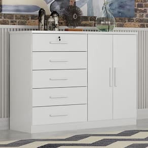 Cômoda Seul 2 Portas 5 Gavetas Neve - Novo Horizonte