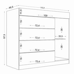 Medidas internas da gaveta maior: 100 cm(L) x 40 cm(P) x 9,5 cm(A);