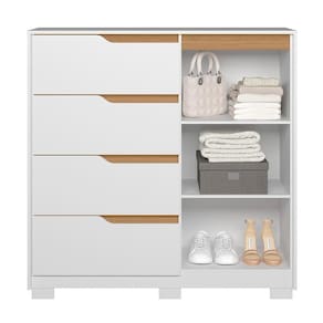 Quantidade de caixas de embalagem: 1 | Quantidade de Gavetas: 4 | Produto: Cômodas | Tonalidade: Multicolorido | Fabricante: Móveis Albatroz Cor: Branco/Nature