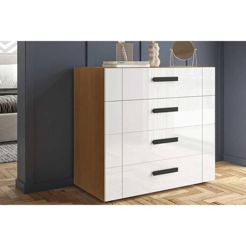Cômoda de Quarto Lisboa c/ 4 Gavetas Freijo/Branco - Politorno