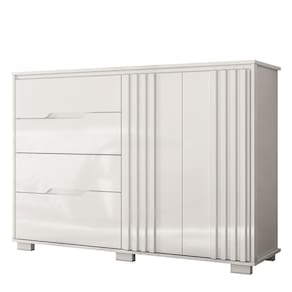 Renove o seu espaço com a Cômoda Texas 2 Portas e 4 Gavetas. Com estrutura em MDP e pintura UV, esta cômoda combina durabilidade com um acabamento sofisticado. Possui 2 portas com dobradiças metálicas e detalhes ripados, além de 4 gavetas equipadas com corrediças telescópicas para um deslizamento suave. Os puxadores usinados acrescentam um toque de elegância, e o amplo espaço interno permite uma organização eficiente. Com pés em PVC, a Cômoda Texas é a escolha ideal para quem busca funcionalidade e estilo em um único móvel.