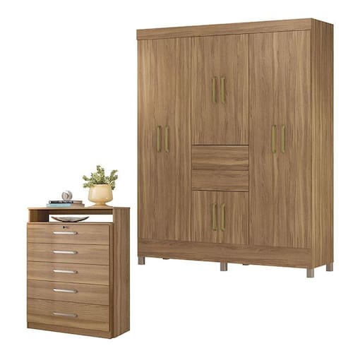 Cômoda Triunfo e Guarda Roupa Casal Munique Amêndola Touch - Demóbile