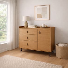 Cômoda Trocador Infantil Carol com 3 Gavetas e 1 Porta Nature - Rede Móveis - Nature | Off White | Gengibre