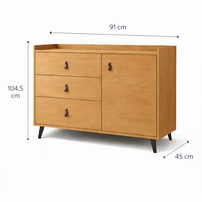 -Função 2 em 1 (Pode ser utilizada como cômoda e trocador)-3 Gavetas amplas para organizar roupas e acessórios-1 Porta com espaço interno para maior organização-Puxadores em alça com design moderno-Pés elevados que facilitam a limpeza do ambiente-Design moderno e elegante para o quarto