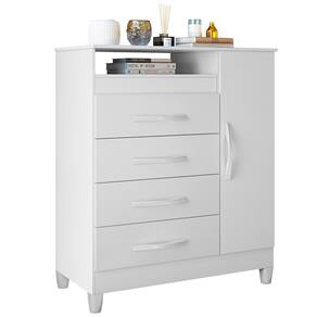 Características do Produto: Marca: Albatroz Modelo: Turquesa Material do Produto: MDP Material da Porta: MDP Tipo de Pintura: Pintura UV Acabamento da Pintura: Fosco/brilho Material do Puxador: ABS Tipo de Gaveta: Externa Tipo de Corrediça: Metálica Tipo de Porta: Bater Tipo de Dobradiça: Metálica Material dos Pés: ABS Possui Gavetas: Sim Q. de Gavetas: 4 Possui Portas: Sim Q. de Portas: 1 Possui Prateleiras: Sim Q. de Prateleiras: 1 Possui Pés: Sim Q. de Pés: 4 Necessita Montagem: Sim Peso Suportado Pelas Gavetas -kg-: 5 Complexidade de Montagem: Alta Complexidade. Recomendasse a Contratação de Montador Profissional. Manutenção e Limpeza: Limpar Com Flanela ou Pano Macio Seco, Não Utilizar Produtos Abrasivos, Desengordurantes, Álcool ou Solvente. Não Expor o Produto Diretamente à Luz Solar e à Umidade.