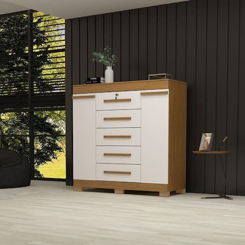 Transforme seu espaço com a cômoda Turquia, feita exclusivamente em MDF de alta qualidade. Com 5 gavetas espaçosas, incluindo uma com tranca para seus itens mais preciosos, e dois sapateiros integrados, esta cômoda oferece praticidade e elegância em cada detalhe. Organize seus pertences com estilo e segurança, graças ao design pensado para otimizar seu ambiente. Além disso, os puxadores em MDF revestido adicionam um toque de sofisticação. Experimente a funcionalidade e o charme da cômoda Turquia em sua casa.