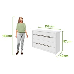Vantagens e Benefícios: Produzido com equipamentos de alta tecnologia Produto avaliado e aprovado por um rigoroso controle de qualidade Fácil montagem e manual de montagem simplificado Design moderno e minimalista Acabamento com toque aveludado Gavetas ideais para acomodação das roupas em maiores quantidades Gavetas grandes e espaçosas com corrediças telescópicas Tampo de 25mm para maior resistência Colunas espessas de 25mm que deixam o produto mais robusto