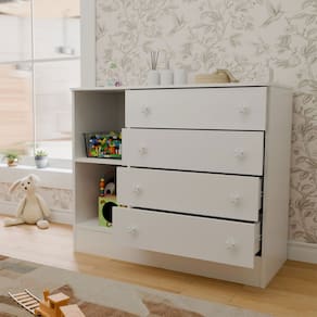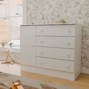 O(a) Cômoda Utopia 1 Porta 4 Gavetas Branco - Loja é produzido em MDP na escala de brilho Brilho, e possui um grau de dificuldade de montagem: Médio.