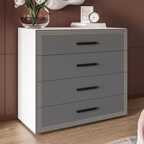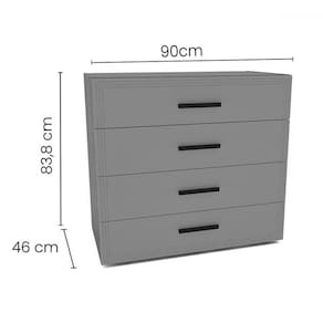 O(a) Cômoda Valência 4 Gavetas Branco/Cinza - Politorno é produzido em MDF e MDP na escala de brilho Semi-Fosco, e possui um grau de dificuldade de montagem: Médio.