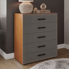 O(a) Cômoda Valência 5 Gavetas Freijó/Cinza - Politorno é produzido em MDF e MDP na escala de brilho Semi-Fosco, e possui um grau de dificuldade de montagem: Médio.