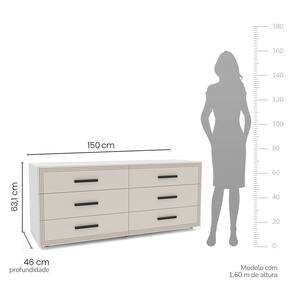 Características: Estrutura MDP Pintura FF/UV 06 Gavetas com Corrediças Telescópicas Puxadores em Plástico Amplo Espaço Interno Detalhes Usinados Peso suportado no Tampo: 20kg Distribuídos Peso suportado nas Gavetas: 5kg Distribuídos