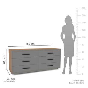 Características: Estrutura MDP Pintura FF/UV 06 Gavetas com Corrediças Telescópicas Puxadores em Plástico Amplo Espaço Interno Detalhes Usinados Peso suportado no Tampo: 20kg Distribuídos Peso suportado nas Gavetas: 5kg Distribuídos