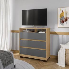 Cômoda Vegas 3 Gavetas Carvalho Americano Grafite - Incorplac