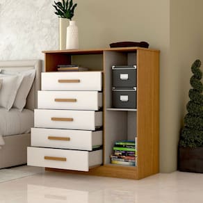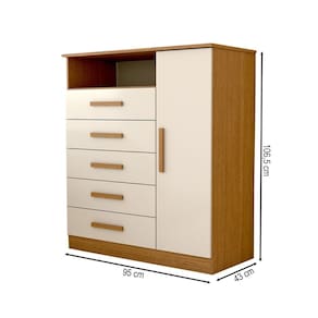 O(a) Cômoda Veneto 1 Porta 5 Gavetas 100% Mdf Cinamomo/Off White - Loja é produzido em 100% MDF na escala de brilho Brilhante e Semi-Brilho, e possui um grau de dificuldade de montagem: Médio.
