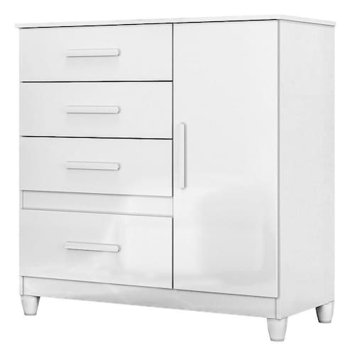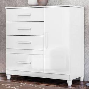 A Cômoda Vênus combina praticidade e design moderno. Estrutura em MDP (porta e tampo 15 mm/ base e fundo 12 mm) com acabamento em pintura UV. Composta por 4 gavetas (sendo 1 gavetão) equipadas com corrediças metálicas, 1 porta equipada com dobradiças metálicas, 1 prateleira interna (ajustável ou removível), puxadores em MDF e pés em PVC. Este produto será entregue em 02 volumes.