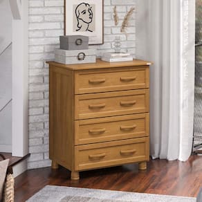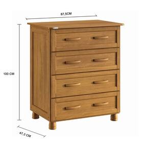 Cômoda Viena com 4 Gavetas em Madeira Pinus Carvalho Acetinado - Tozzeto