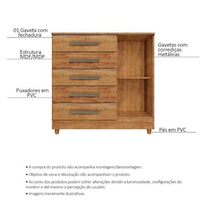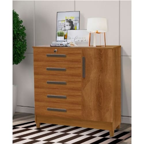 Cômoda 5 Gavetas 1 Porta Vitória Rud RackA Cômoda 5 Gavetas 1 Porta Vitória Rud Rack foi desenvolvida para pessoas de bom gosto e que precisam de móveis funcionais e de custo benefício. Esta cômoda possui cinco amplas gavetas fáceis de abrir, uma porta lateral com prateleira interna para que os pertences sejam bem acomodados. Aproveite!Medidas:Altura: 93 cmLargura: 99 cmProfundidade: 47 cm– Produto em MDP e MDF– 05 Gavetas com corrediças metalicas– Prateleira Interna– 04 pés em pvc