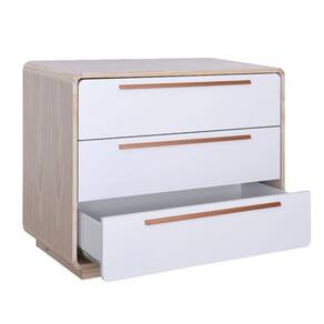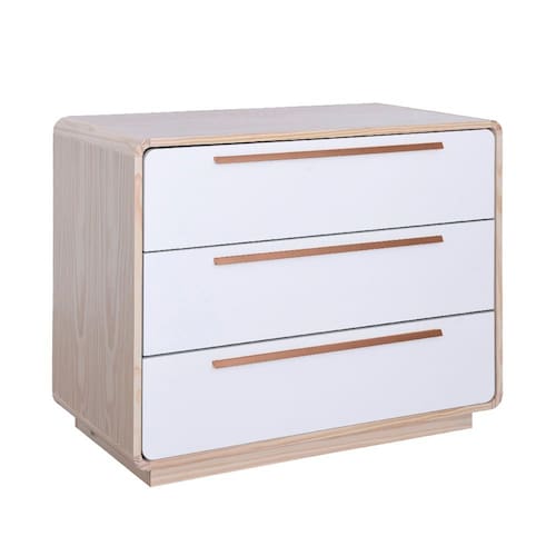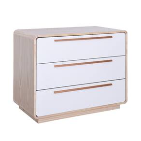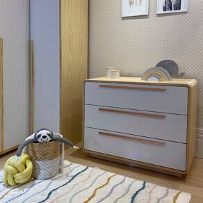 Cômoda Wave 3 Gavetas com Puxadores Cobre - Natural e Branco