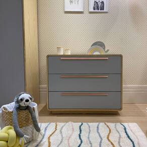 Cômoda Wave 3 Gavetas com Puxadores Cobre - Natural e Cinza