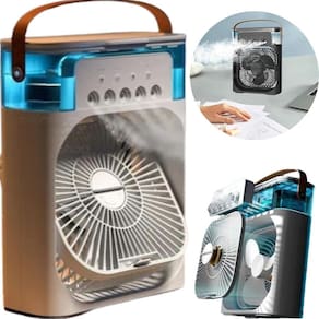 Posso regular a intensidade do vento Resposta: sim, ele tem a opção de 3 velocidades. Qual é a voltagem dele Resposta: ele é bivolt, funciona em todos os locais do brasil. O produto possui função sleep desligamento automático Resposta: sim, tem um timer com a função para programar 1, 2 ou 3 horas para desligar. Ele é giratório Resposta: sim, ele pode ser posicionado manualmente para cima e para baixo. O produto consome muita energia Resposta: não, o produto exige pouca energia para funcionamento. Qual a quantidade de água suportada em seu recipiente Resposta: a capacidade do mini climatizador de ar é de 600ml. Qual é o alcance da ventilação Resposta: o alcance gira em torno de 5 metros, mas o mesmo climatiza o ar quando o ambiente está fechado. Marca: AL Ean: 7894952906243
