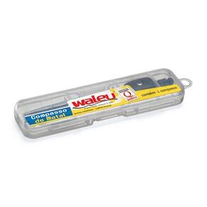 - O Compasso Waleu é o instrumento ideal para desenhos de arco de circunferência. - Possui ponta seca, em forma de agulha, que determina o ponto fixo no papel e a outra ponta dotada de um estilete de grafite. - Super resistente. - Material: metal. - Não recomendável para crianças de 4 anos, por conter partes pequenas que podem ser engolidas ou aspiradas e pontas agudas. - Crianças entre cinco e oito anos somente devem utilizar sob supervisão de um adulto.