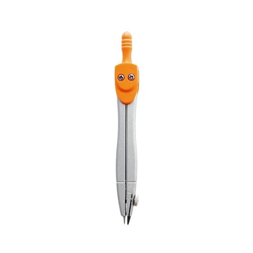 Compasso com corpo metálico sem tira linha e com estojo plástico compacto. Alto desempenho.